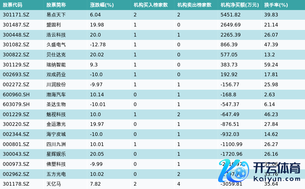 机构净卖出的个股中欧洲杯体育,前三分歧为天亿马(301178.SZ)、五方光电(002962.SZ)与佛塑科技(000973.SZ)。