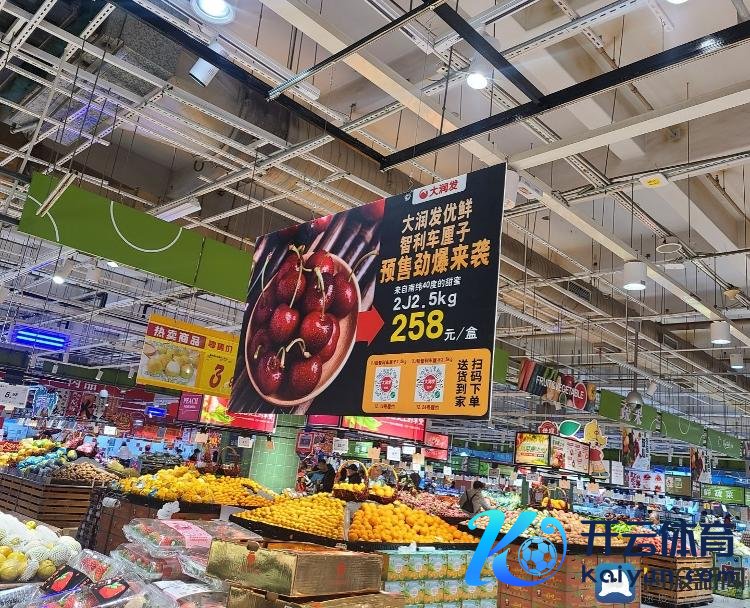 济南大润发超市吊挂的智利车厘子线上预售,2J车厘子2.5Kg258元/盒。