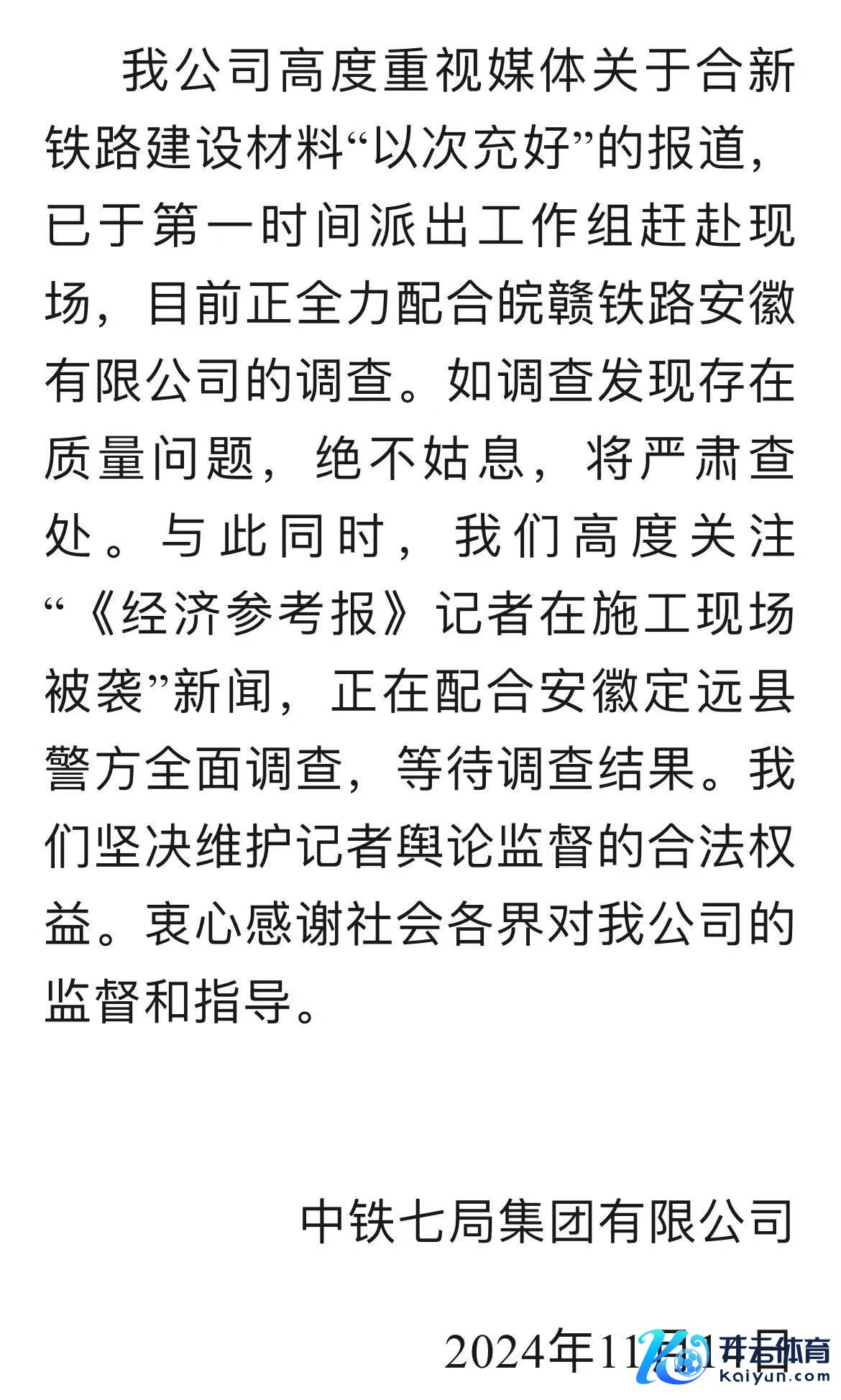 中铁七局回报记者在施工现场被袭新闻:配合警方全面造访欧洲杯体育,坚忍留神记者公论监督的正当权益中铁七局回报记者在施工现场被袭新闻:配合警方全面造访,坚忍留神记者公论监督的正当权益