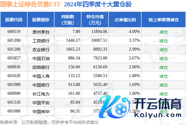 国泰上证详细来回ETF为指数型-股票基金,凭证最新一期基金季报流露,该基金钞票确立:股票占净值比99.83%,无债券类钞票,现款占净值比0.19%。基金十大重仓股如下: